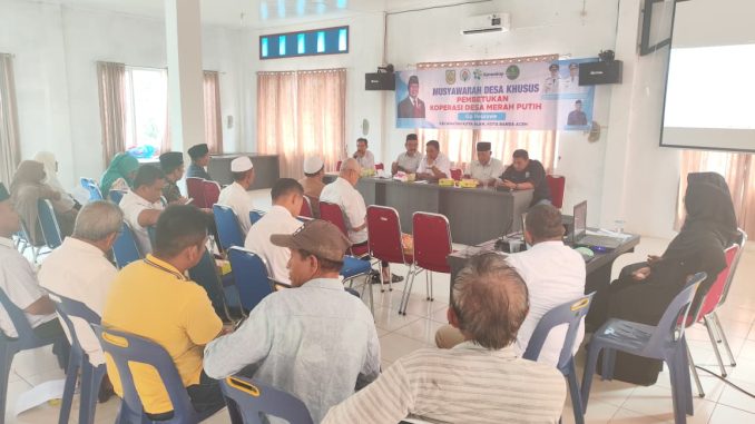 Mudesus dihadiri oleh Pemerintah Gampong, Tuha Peut Gampong (TPG), Masyarakat dan Forkompinca serta Tim Ahli Kota terdiri dari unsur Disperindagkop, Pendamping Desa disertai Kecamatan. Dalam sambutanya Pj. Keuchik Boy Ferdian, menyampaikan pentingnya pembentukan Koperasi Merah Putih sesuai dengan Instruksi Presiden yang bertujuan untuk miningkatkan kesejahteraan masyarakat dengan ikut aktif dalam partisipasi kegiatan ekonomi masyarakat melalui koperasi.