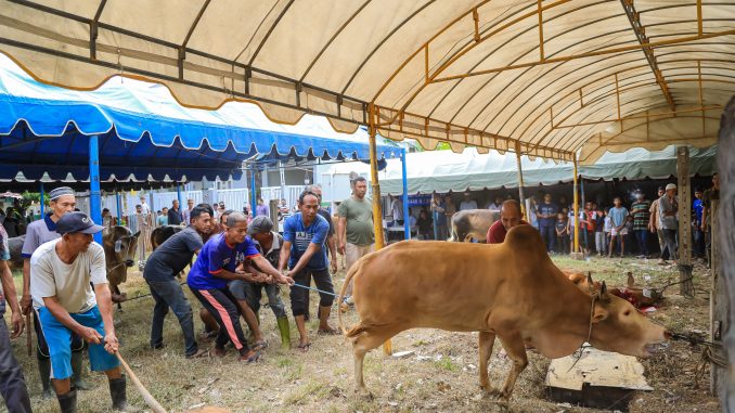 “Kami menerapkan sistem arisan, di mana setiap kelompok terdiri dari tujuh orang dengan biaya kontribusi sebesar 2,8 juta rupiah per individu,” jelas Iwan, yang juga menjabat sebagai Kepala Dusun di Gampong Beurawe. Iwan melanjutkan bahwa selain dari penduduk Beurawe, beberapa perusahaan swasta dan lembaga pemerintah yang beroperasi di gampong Beurawe turut serta dalam kegiatan ini dengan menyumbangkan hewan kurban. (ariefzuu)